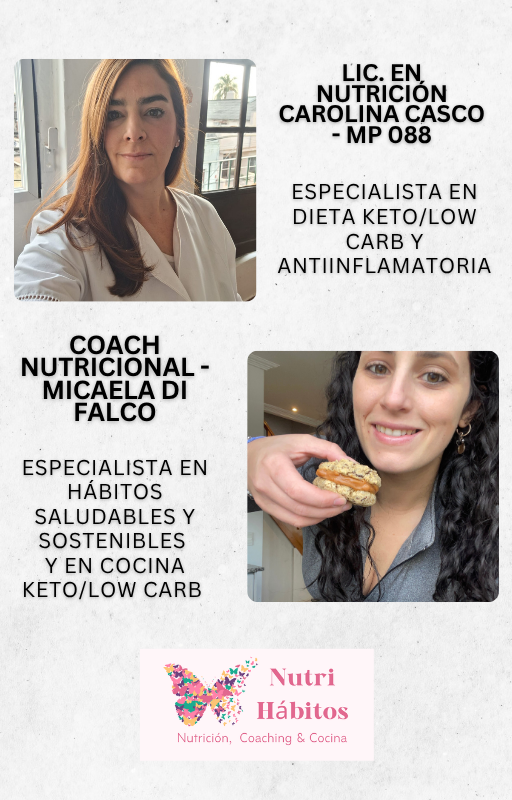 Somos Micaela Luján Di Falco; Coach nutricional y Especialista en alimentación y cocina KETO hace más de 4 años; y La lic. Carolina Casco -MP 088- Especialista en alimentación, keto, low carb y antiinflamatoria. Tenemos una comunidad de más de 70 mil personas en nuestras redes sociales.