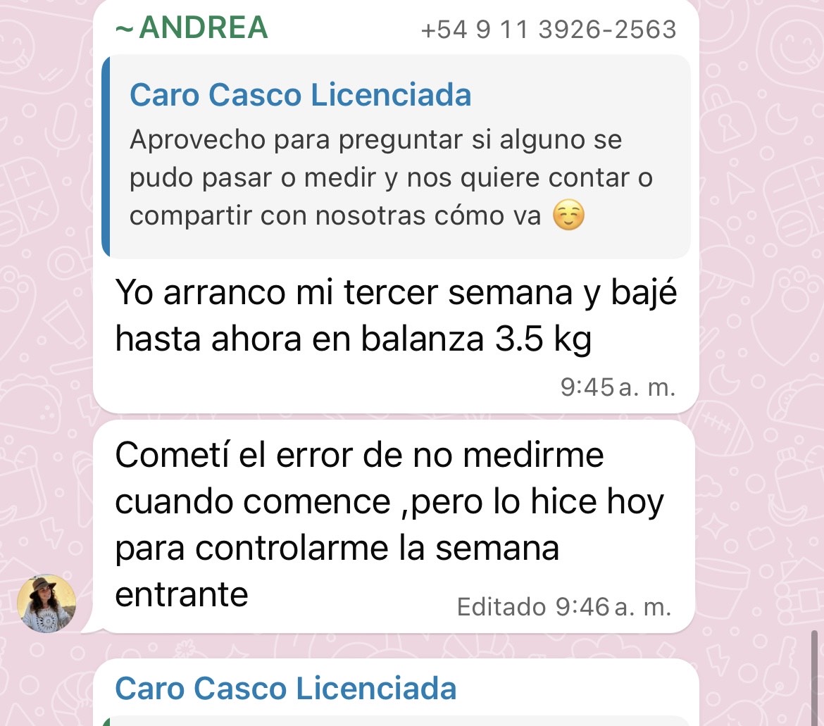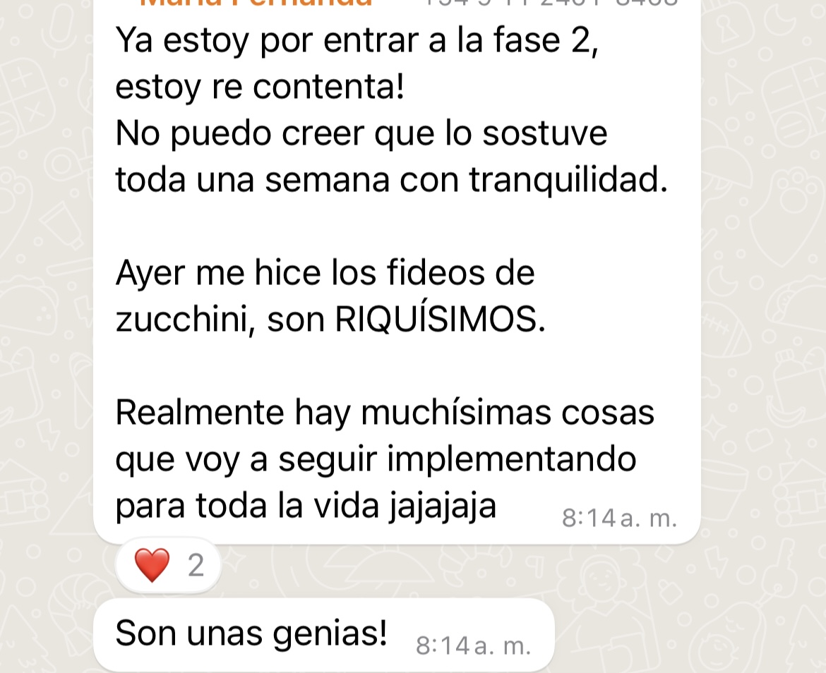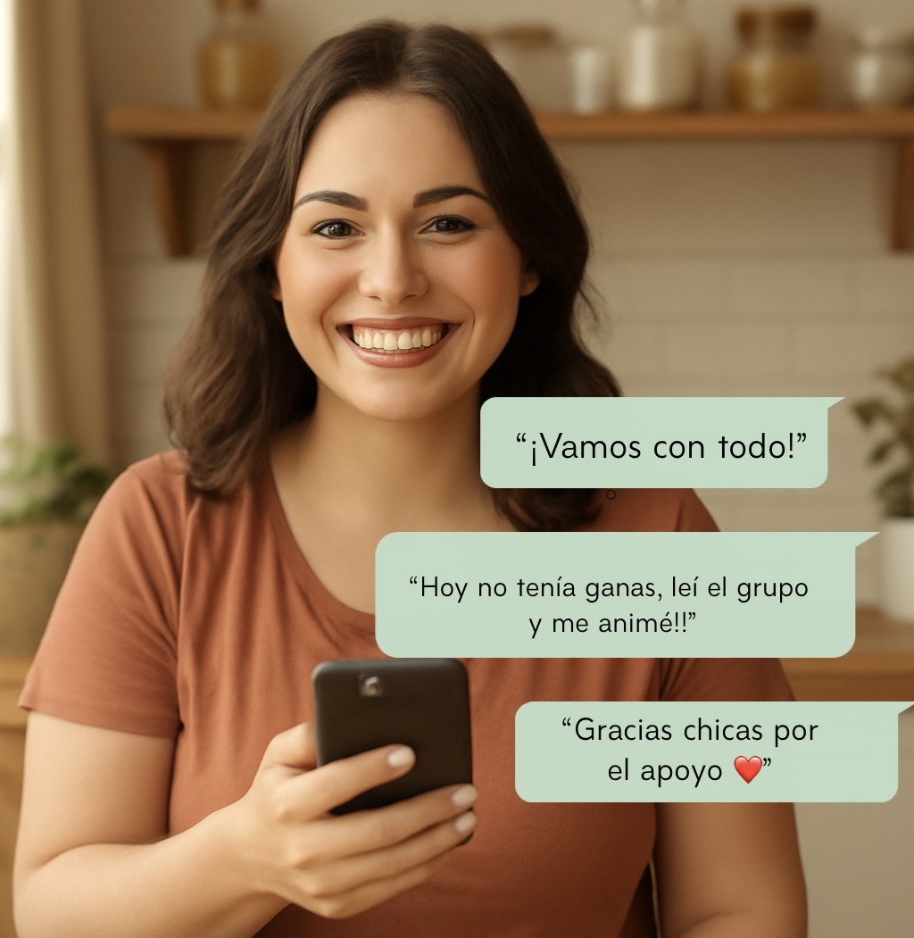 Tenés acompañamiento real y profesional. Accedés a un grupo con una nutricionista especializada, donde podés hacer todas tus consultas y recibir respuestas personalizadas. También hay una comunidad activa que te motiva todos los días.